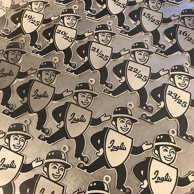To commemorate the occasion, I have 25 numbered headbagdes for our Retrotec bikes. I couldn't leave out the Inglis brand so I made up some new badges for them as well.